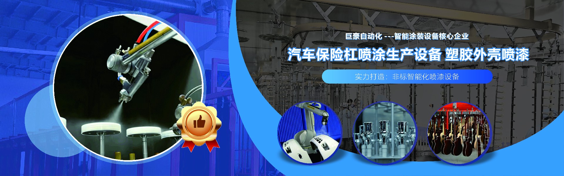 巨豪自動化設備有限公司是一家擁有自動噴涂工業技術、自主知識產權的高科技型技術企業。公司總部位處廣東省深圳市寶安區松崗街道,工廠位于東莞市石排鎮,廠房占地面積8500平方米,擁有專業員工80名,管理人員及技術人員近30名,是一家集工業噴涂機器人研發、生產、銷售,服務為一體的綜合性公司,擁有雄厚的技術力量、完整的質量管理體系、精良的加工設備,專注噴涂技術領域12年。擁有多項國家技術專利,公司已經為國內外客戶提供了數百條各類智能涂裝生產線。